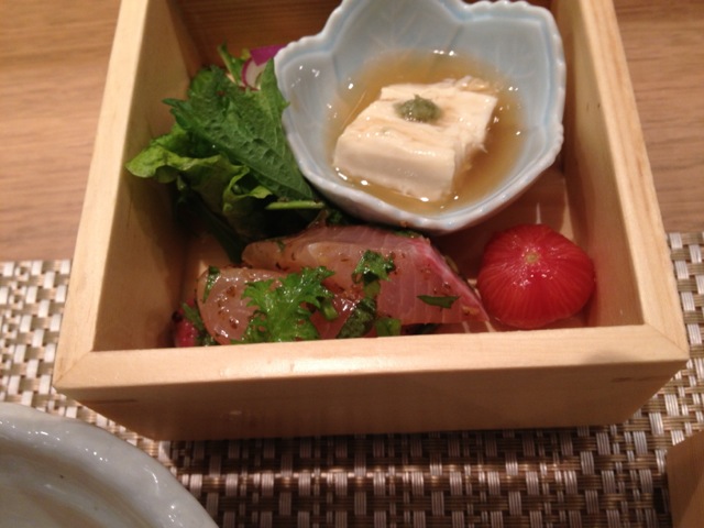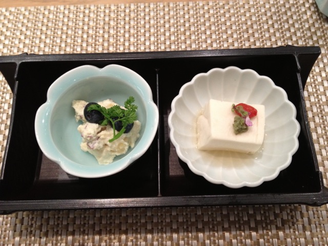 白和えと胡麻豆腐。白和えはクリームチーズが入っていて濃厚でした。