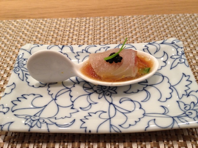 小さな前菜は金魚のような形。
