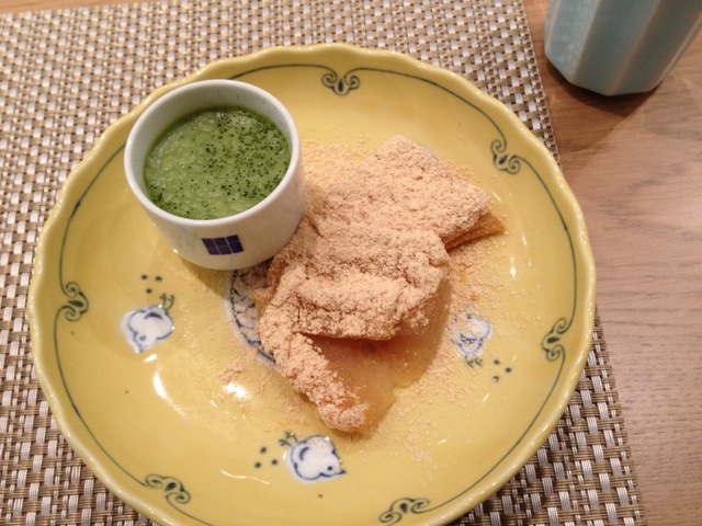 デザートはわらび餅と水チョコレートとかいう抹茶味の濃厚なホワイトチョコでした。