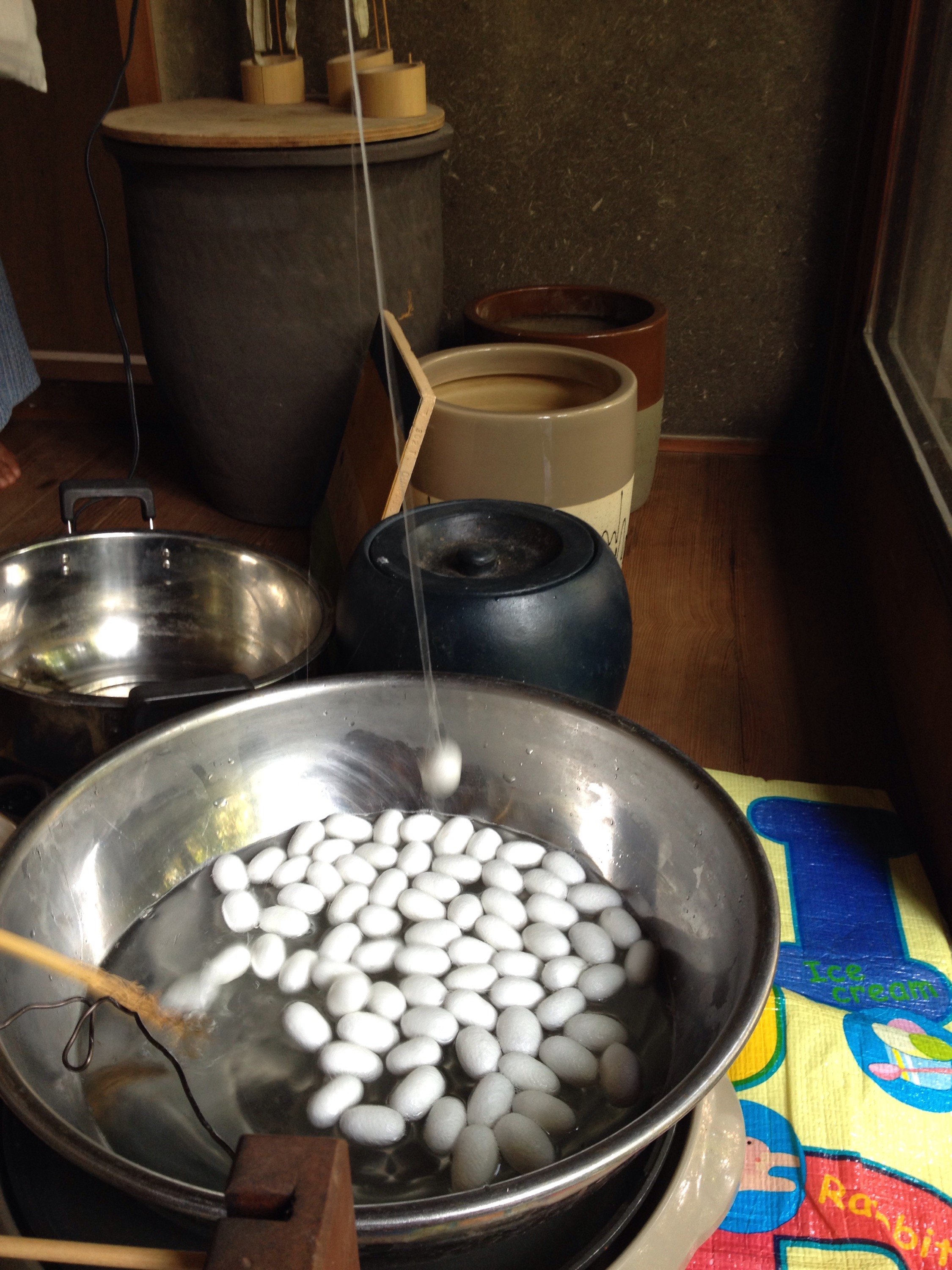 お気に入りの場所 糸繰り Posted on 2015年8月29日 by 村田 紅 大原野のとある場所。 染色と織りの作家さんのアトリエがあります。 先日、「そろそろ糸取りを始めさせてもらいますね。」とのご連絡が。 何の糸取りかって? 私が注文した帯です。 お蚕さんが眉になったから、これからその帯の為の糸取りをするとの事でした。 もちろん駆け付けました。 このお蚕さんをお湯につけ、全てから糸をとり、一本にします。 少し紡がせていただきました。 これから秋に山で栗の葉とアケビをとり、糸を染めて、それから糸を張って織りに入るそうです。 糸になる過程から見守ると愛着もひとしお。楽しみです。 村田 紅 大阪音楽大学卒業後ミ・ベモルサクソフォンアンサンブルメンバーとしてヨーロッパ諸国やアメリカカーネギーホールやタイ王室、中国などでのクラシック音楽の演奏を経てジャズ、ラテン、現代音楽とジャンルにとらわれない演奏スタイルを確立。 音楽理論、ソルフェージュのレッスンも行っている。 村田 紅 の投稿をすべて表示